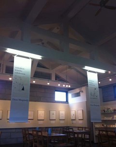 11月29日、U1 SPACEに金子ともこさんときみこさんの展覧会「画と詩のラプソディ展」を観に行ってきました。福岡にお住まいで、第一線で活躍されている金子さん。黒一色で描かれたシリーズでしたが、洗練された描写は画面の隅々まで緊張感を広げており、間の取り方が「さすがだな〜」と勉強になりました。僕が知り合ったのは、20世紀の終わりの頃だったと思います。「九州会」というデザイナーとイラストレーターのグループ展で福岡を訪れたとき。今回は、個展開催中に何度か鹿児島まで足を運んだそうですが、そんな中、オーテマハウスまで来て頂き、お話をする機会がありました。「イラストレーターとしての個性」について、随分と専門的な話が出来ました。
