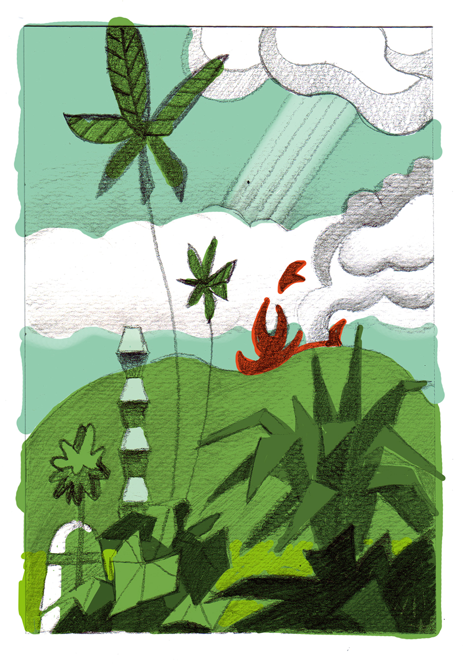 桜島のイメージスケッチ。鉛筆にデジタル彩色。